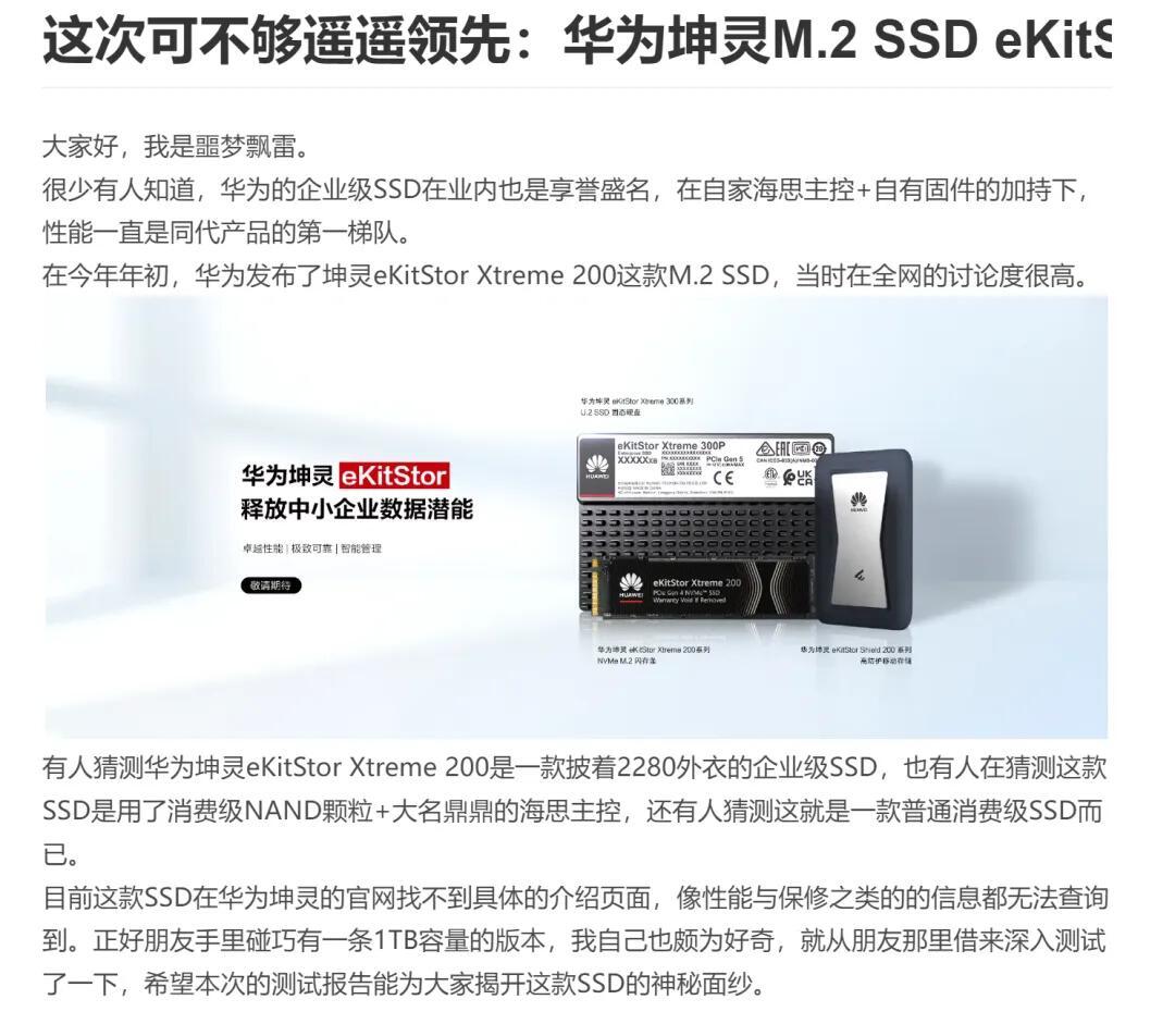 华为的SSD此前在B端叱咤风云,不过在将企业级存储业务出售给忆联后,又推出了Xtreme 200和Xtreme 200E这两块M.2产品。