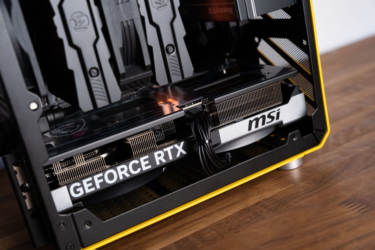微星的5070萬圖師雙風扇版本是爲數不多可以塞進C24的一張5070,安裝的過程中甚至需要拆掉整個機箱框架才能將顯卡放進去