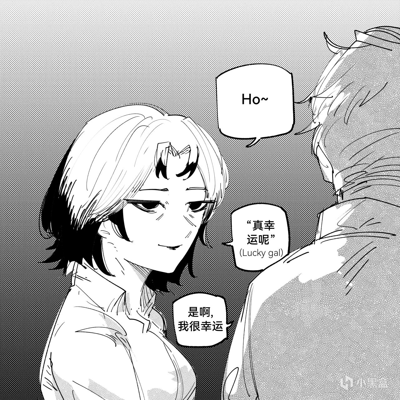 啧,阿纪这表现,有点挑逗的意思。这个“真幸运呢(Lucky gal)”,说的好像不是阿春,而是她自身。至于到底是什么意思,就看作者后面怎么编吧。