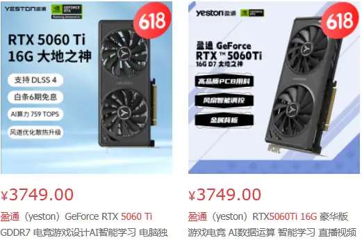 5060TI 16G首发价3599元起,现在某东价格普遍在3749以上: