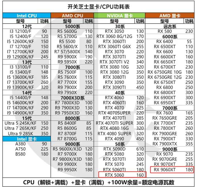 也就是说:主流i5、R5级CPU,搭配9070XT显卡,500W的电源就足矣