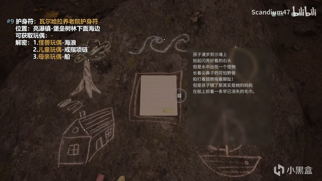 以及下图这种遍布各处的童谣解谜,当你对不上设计者的电波的时候就是非常烦躁(真有人能对上吗),给的奖励也是一些护符,在简陋的战斗系统下可以说效果是聊胜于无,以至于我后来看到就已经不想碰了。