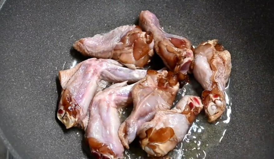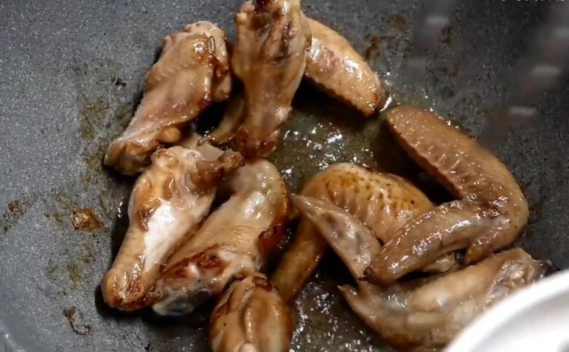 鍋燒好油,把雞翅放入鍋中小火煎一下