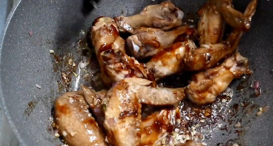 放入雞翅再次翻炒,並加入少量耗油和番茄醬(看需求添加)