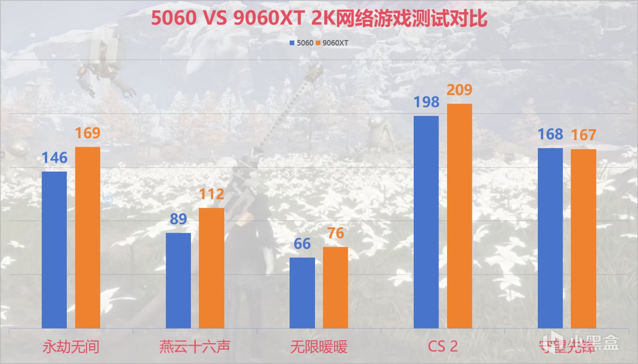 3A游戏部分,9070XT和5060还算是旗鼓相当的对手,但是到了网游部分,9060XT几乎形成了对5060的一边倒态势,很多人可能会感到奇怪,为什么9060XT和RTX5060是相同的定位和规格,但是网游性能上却对N卡同级实现了碾压之势?其实这是因为AMD RDNA™4架构集成第三代无限缓存技术,类似于AMD Ryzen上的X3D,在低分辨率+多人网游中能快速调用常驻指令,让游GPU游戏性能获得更好发挥。