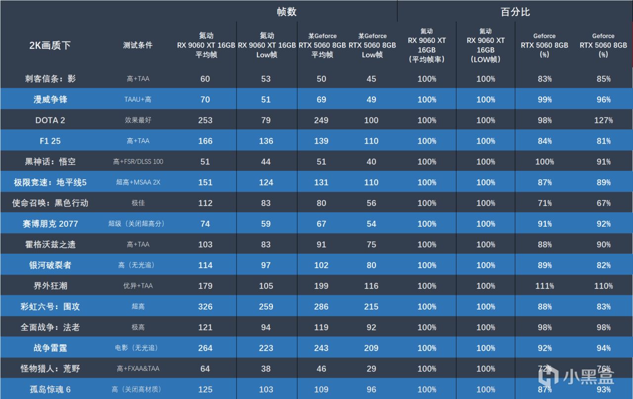 作为定位2K游戏解决答案的RX 9060 XT在游戏测试的结果中,同样表现亮眼。