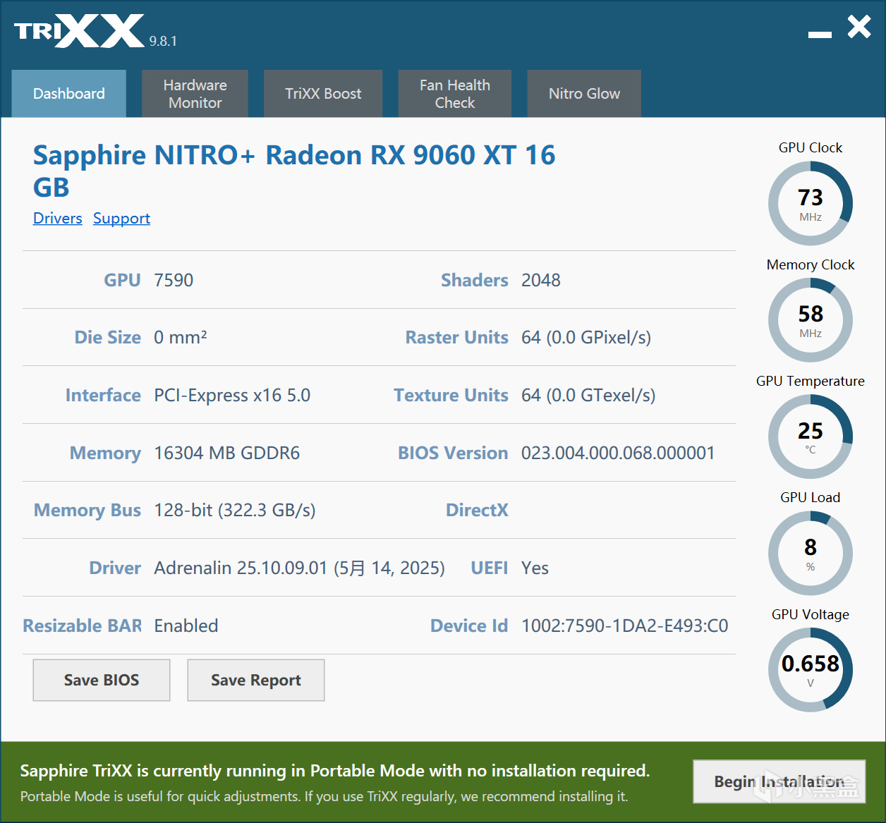 目前蓝宝石的TRIXX 9.8.1软件也能对信息进行读取,但是不准。