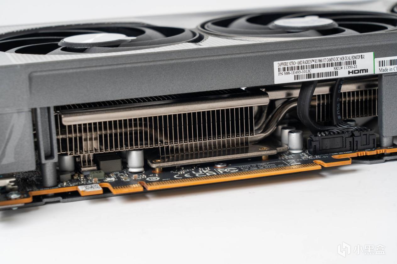 整体尺寸来到300 x 131 x 55mm,相较老大哥9070XT 氮动,尺寸上下了一圈,更便于在迷你机箱上的安装。