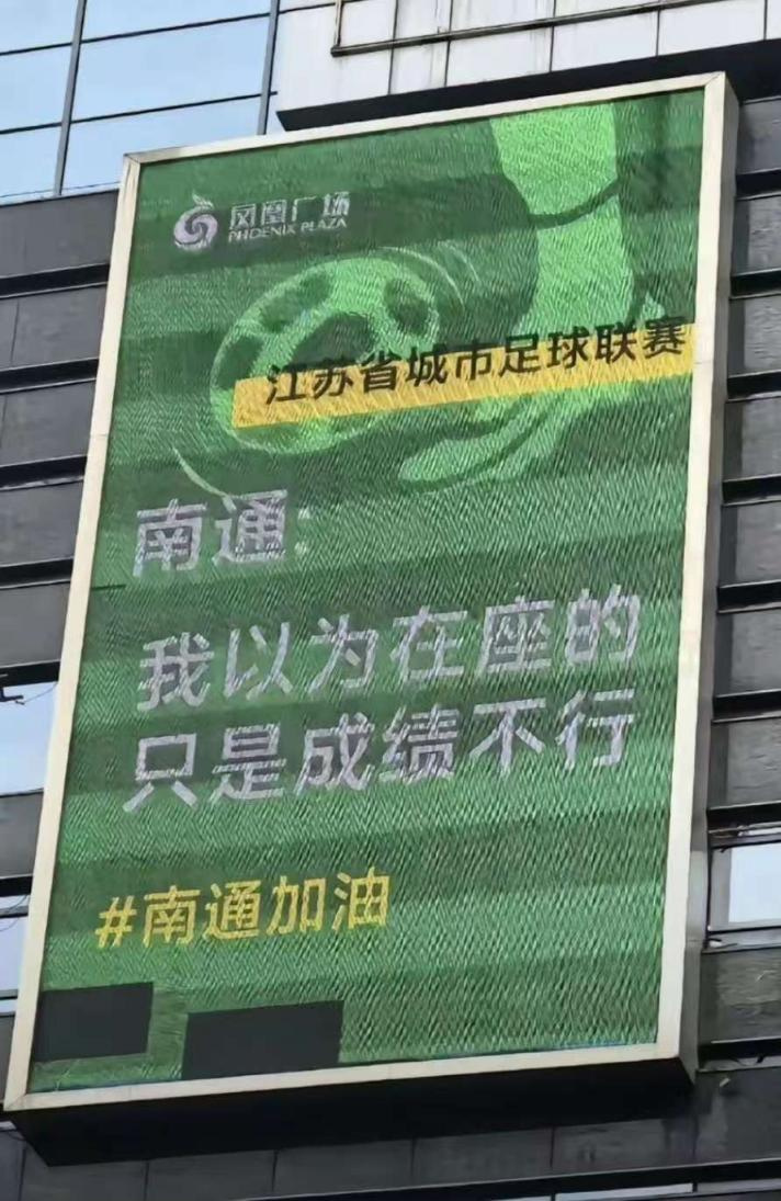 再比如,南通因为目前是积分榜上的第一名,加上又是靠搞教育出名的,于是便有了嘲讽其他城市“我以为在座的只是成绩不行”的标语。