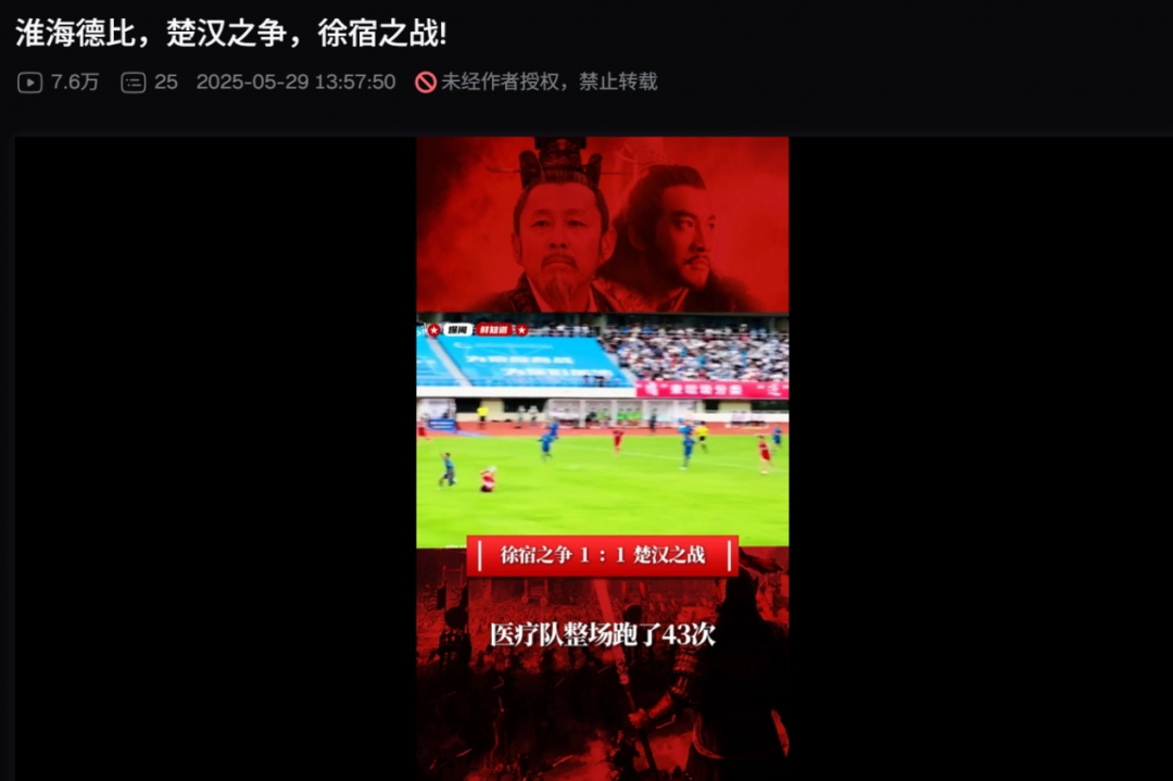 当然,光会口嗨肯定不够,上了赛场还得凭实力说话。在这点上,不得不承认苏北的几个城市确实比我们苏南拼命,在宿迁对徐州的楚汉之争2.0中,整场比赛踢下来,场边负责抬担架的后勤队伍,来来回回跑了得有几十趟,运动量一点不输场上的球员,双方基本把替补用光了,才最终以平局收场,充分彰显了竞技体育的拼搏精神。