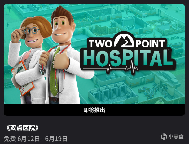 下一週贈送的免費遊戲爲《雙點醫院》,領取時間6月12日~6月19日