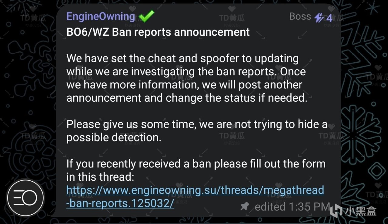 上個星期著名外掛商EO在自己客戶羣中表示許多使用《使命召喚》EO外掛的玩家都遭到了封禁,他們已凍結外掛訂閱服務,並建議用戶自行承擔使用外掛的風險。