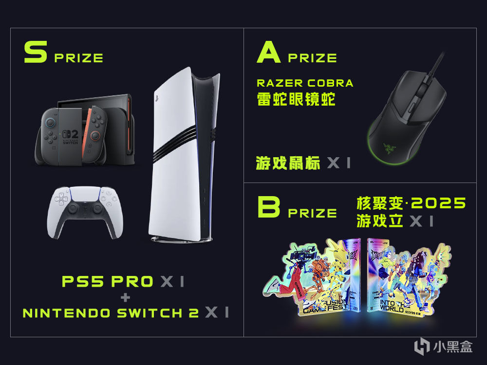 進入場館後,工作人員會爲大家發放本次核聚變的導覽手冊,按手冊提示參與集章挑戰活動,集齊 5 個蓋章後,即可到兌換區換一張刮刮卡,刮開的獎品級別隨機,後面就要大家各憑本事了!本次的獎品機核也是下了血本,S 級大獎是 PS5 Pro 和 Switch2 各一臺!