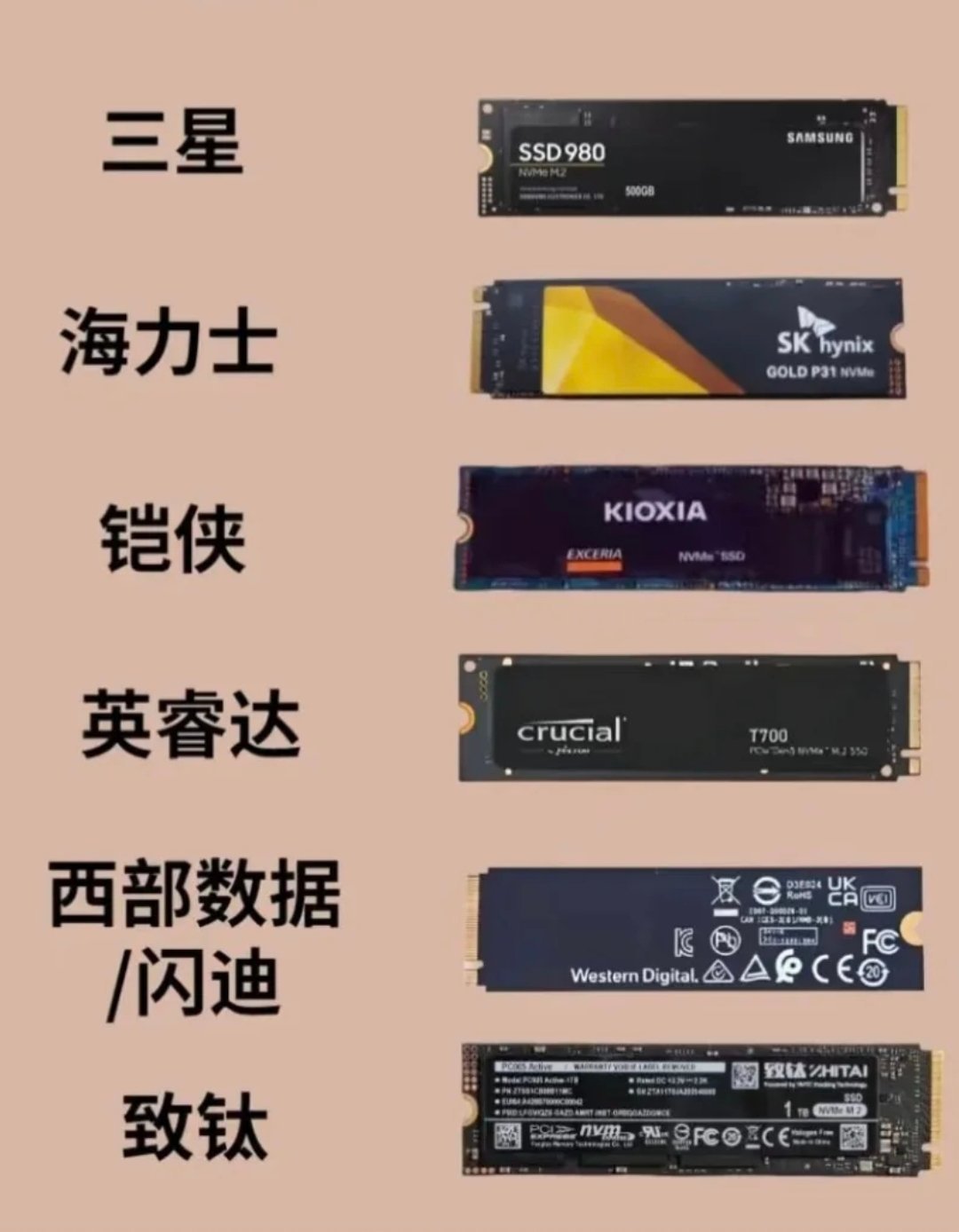 選擇原廠品牌:優先選擇三星、美光、鎧俠、海力士、英特爾、長江存儲等原廠品牌的固態硬盤。