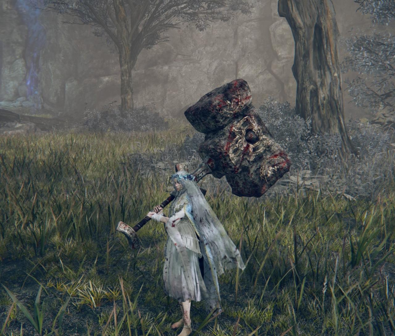 三头强化肌腱+先行者半神落地无视伤害的人型托雷特,狂奔在宁姆格福一般大小的地图上探索。