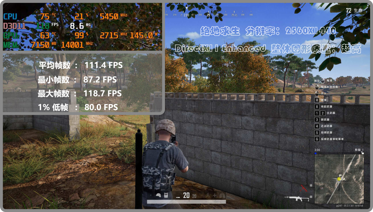 ▼用喫雞作爲代表簡單測下網絡遊戲的情況。2k分辨率+超高畫質,平均幀數穩穩110fps,最低幀數也比較高,能得到非常流暢的遊戲體驗。