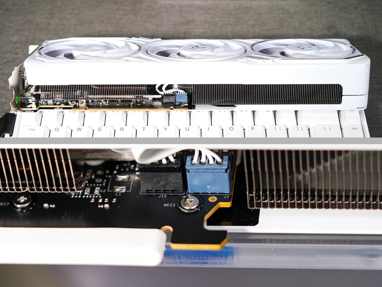 ▼接口爲3個DP 2.1b和1個HDMI 2.1b接口,可以享受無壓縮 8K@60Hz與4K@240Hz的顯示體驗。此外可以看到這款顯卡採用略微越肩的設計。