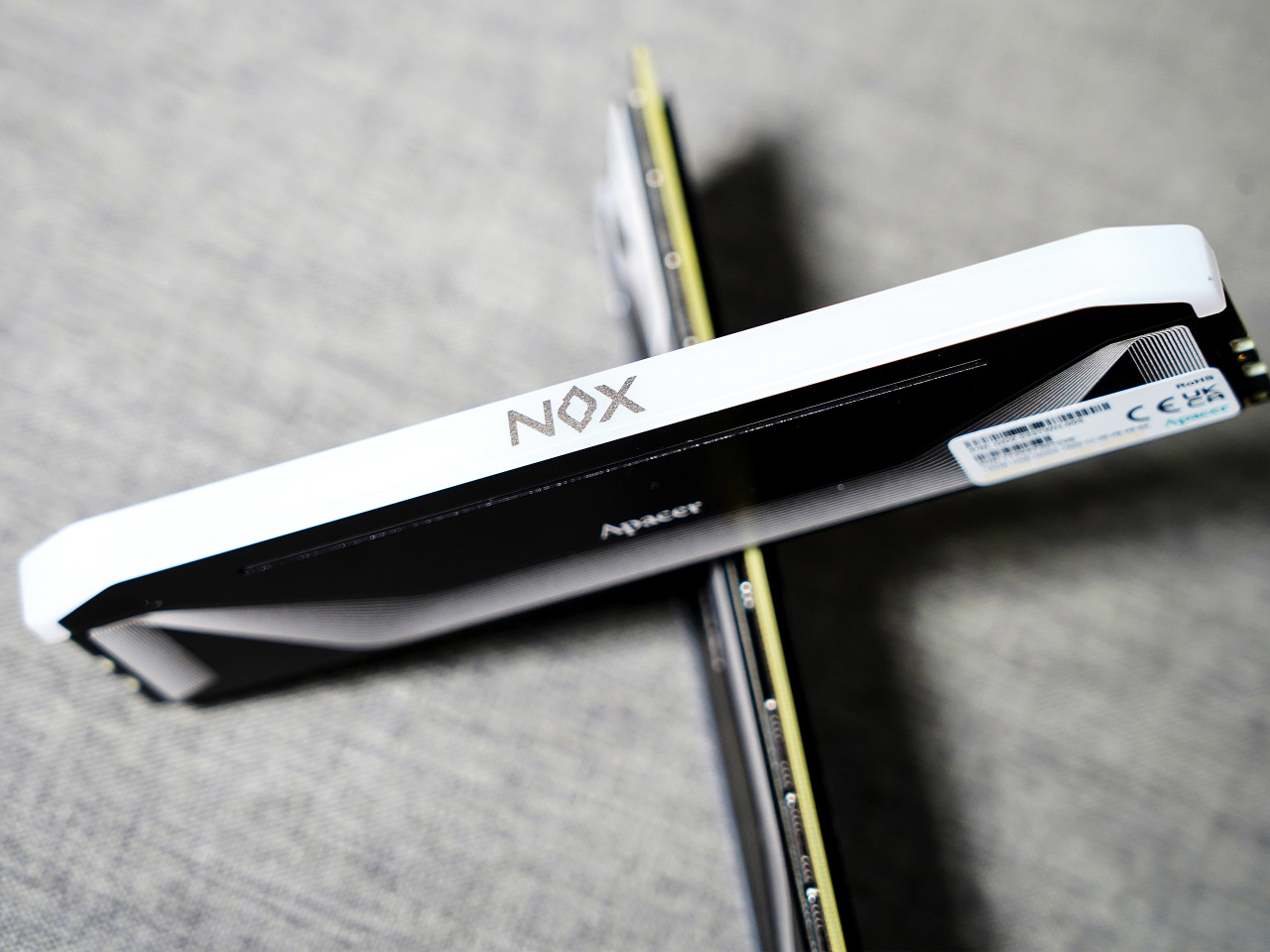 ▼內存頂部有比較大面積的白色導光條,中間位置有NOX標識,點亮後具有廣角漫射燈效,並支持各大板廠ARGB燈控。