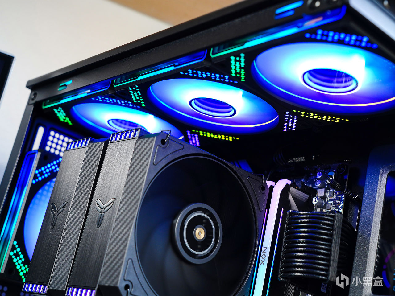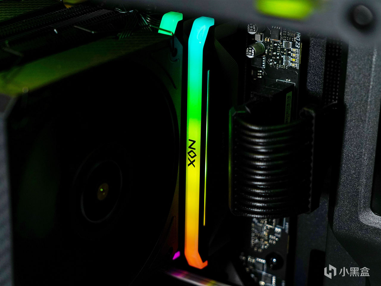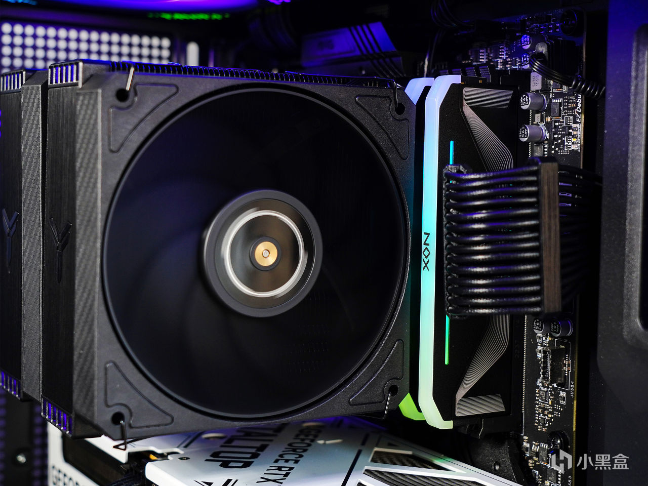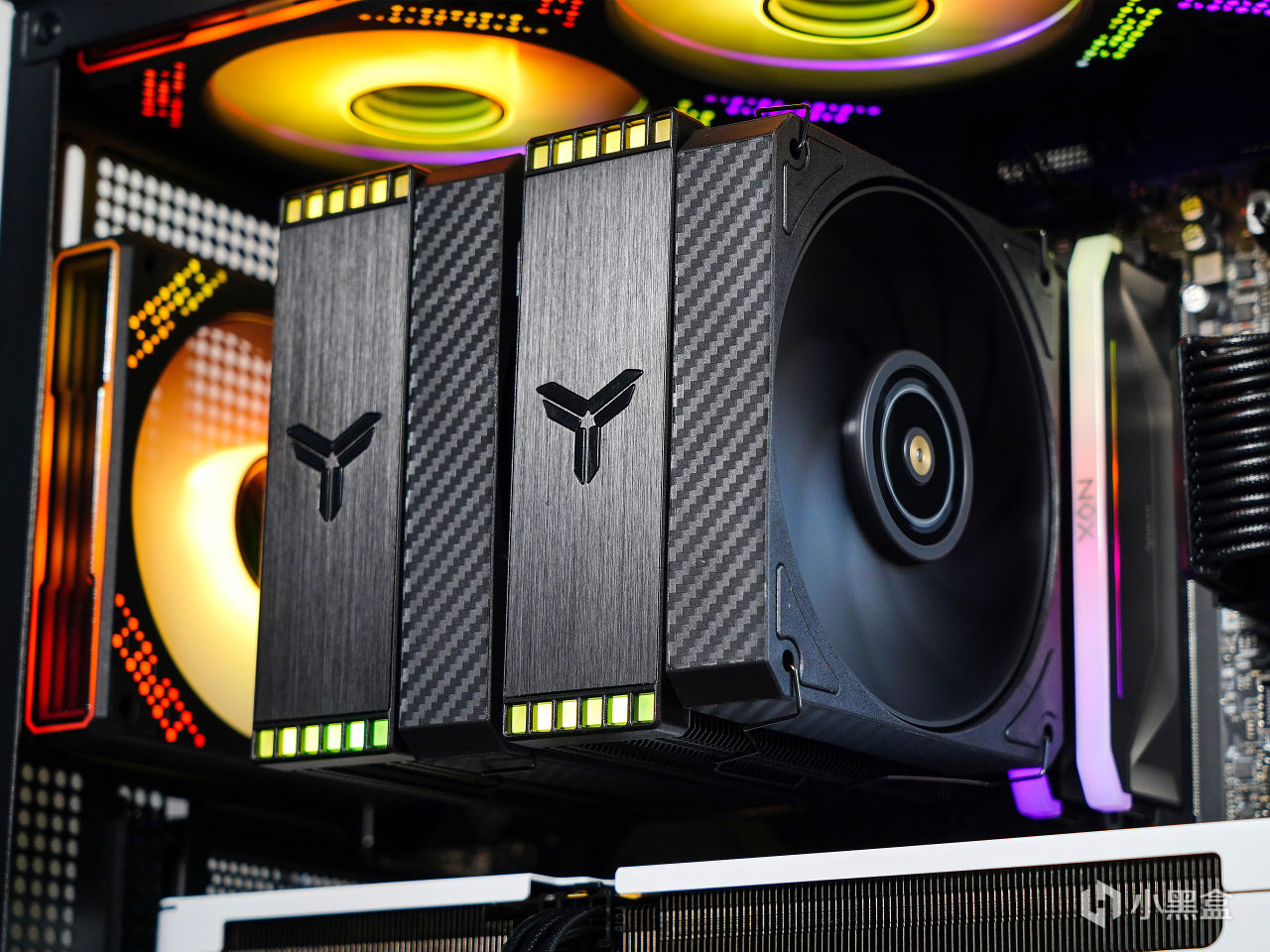 ▼HX6280兼容43mm 高內存條,NOX RGB DDR5官方給的高度爲不到44mm,但可以看到安裝後並無衝突。