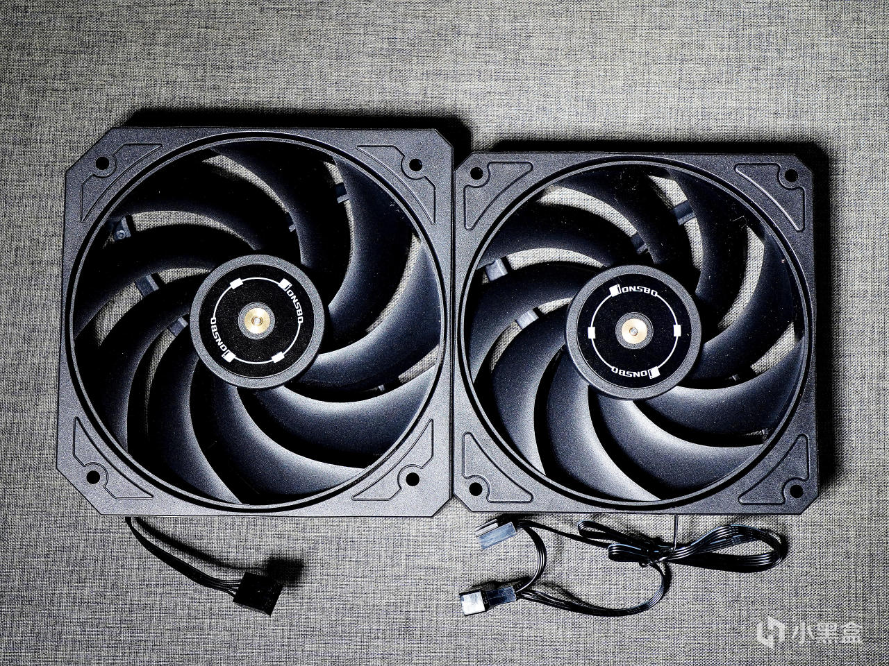 ▼風扇爲一大一小,大的爲130mm直徑,轉速800-2000RPM,風量27.26-81.27CFM;風壓0.3-2.01mmH2O;噪音18.2-32.1dB(A)。小的爲120mm直徑,轉速800-2200RPM,風量29.26-72.38CFM;風壓0.35-2.57mmH2O;噪音17.0-30.4dB(A)。兩個風扇都是25mm厚度,無光效。