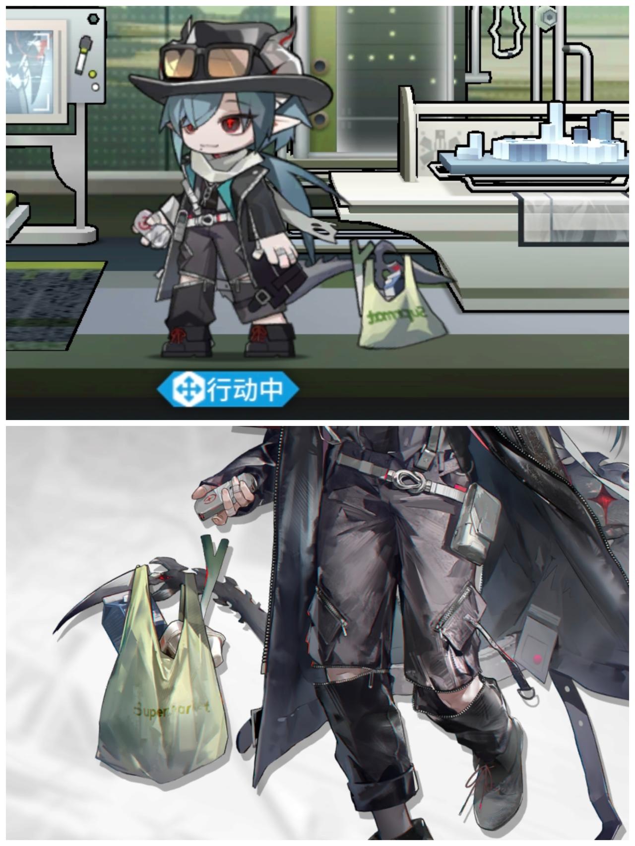 ⑤先锋干员渡桥会用尾巴充当随身机械臂,提着他的购物袋,从内容来看,应该每天买菜的时候都这么干