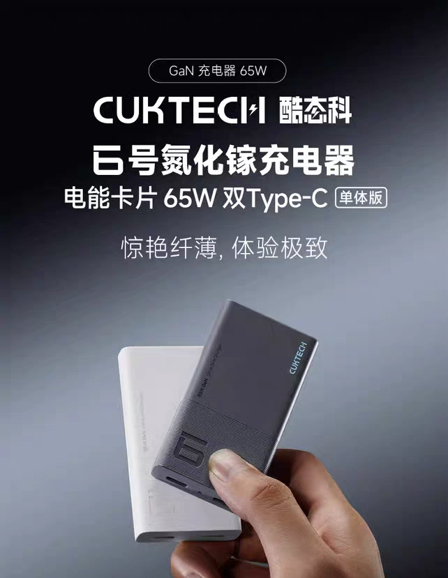 酷態科家比較熱門的一款產品,很直觀的展示了什麼叫便攜性。正面大小比銀行卡小,側面也是不到2釐米的厚度,插腳也能彎折。在2C口中,藍色C1口支持小米的65W私有協議,C2最高22.5w。(如果你有酷態科10號mini,那把這兩個綁在一起就會得到一個一個10000毫安時+65wMAX的二合一充電寶,在便攜性上會讓你有一個無與倫比的體驗)但是極致的輕薄帶來的是較高的紋波表現,它不適合作爲長時間使用的充電器,更適合作爲偶爾的應急使用。