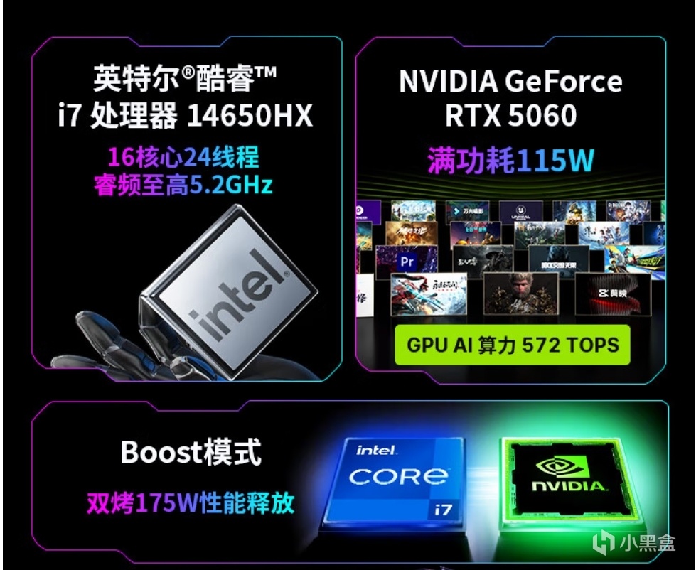 某B品牌笔记本是i7-14650h+115w满功耗的5060,同时双烤的模式是175w(boost模式可能是开了超频模式)