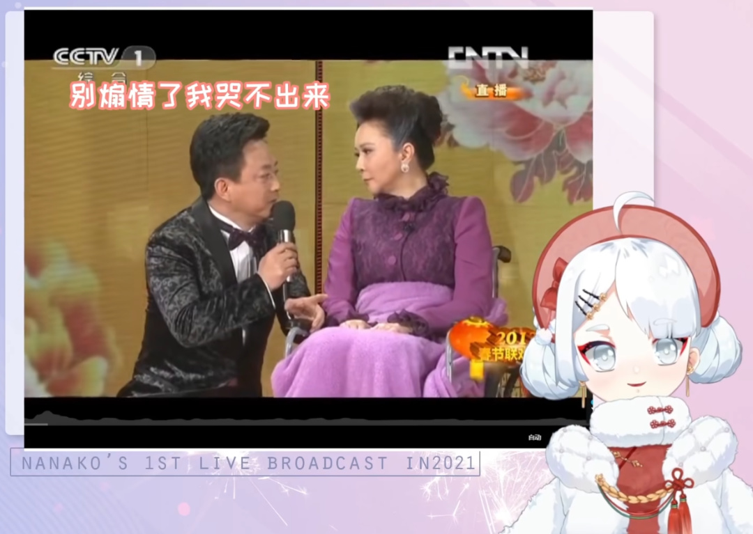對,就是在春晚上頻繁出現的蔡明老師。她現在套着個皮,在睿站當虛擬主播,叫“菜菜子nanako”。
