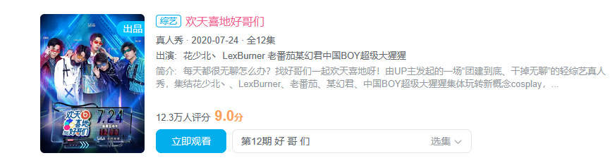 所謂綜藝潮,是試圖搞“擴圈”。各種綜藝化、娛樂化的內容鋪天蓋地而來;一邊把B站原有的某些頭部up,趕去搞綜藝、搞男團、向着飯圈文化深刻看齊;另一邊,開始自己搞綜藝,說唱、配音、脫口秀……各個領域都在搞,有的口碑頗好有的風評爛完,只是一切好像都不怎麼賺錢,所謂自家的綜藝都在今天成了過去式。