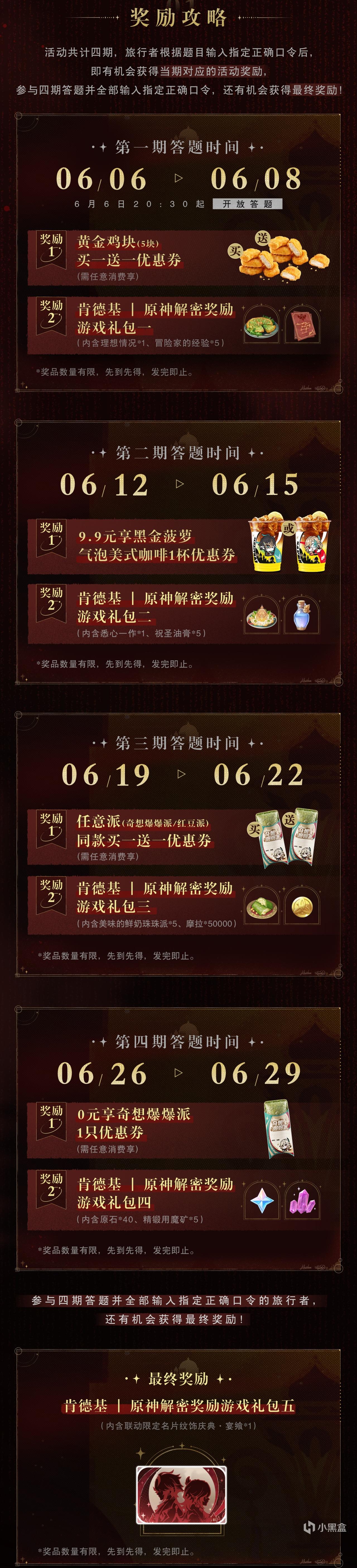 參與方式:活動期間進入H5參與答題互動,共四期問答,參與四期活動有機會獲得聯動限定名片紋飾、40原石以及肯德基0元超值產品券(任意消費享)! *每期獎池獎勵不同,數量有限