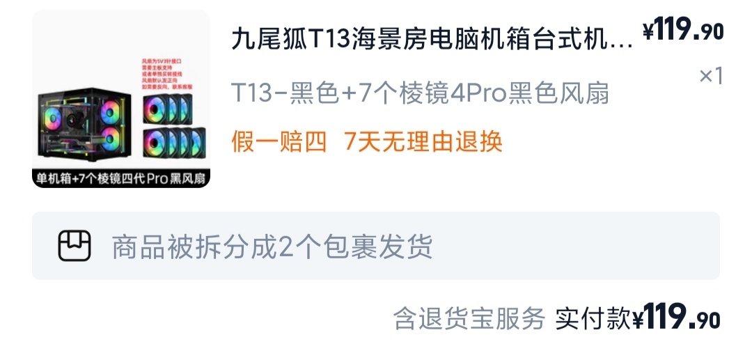 机箱还是老主角——九尾狐T13,另加购7个棱镜4pro(风道3正4反),hy们按需选择合适的机箱就行。