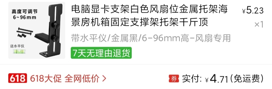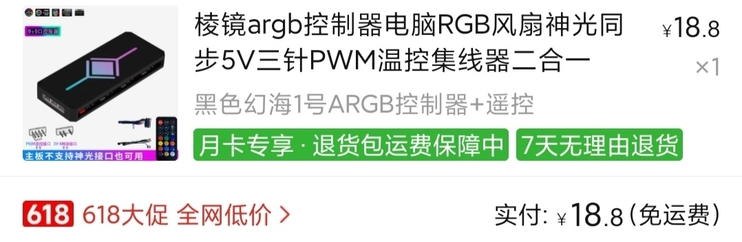 配件有ARGB控制器(帮助老主板控制灯光的)、显卡支架(防止压弯)、电源线,这次没买硅脂因为上期的还剩有。