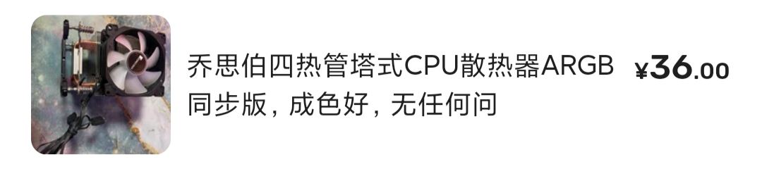 散热给到的是乔思伯四热管塔式散热器ARGB版,作者恍然发现买二手散热器能剩好多预算,hy们可以购买其他的四热管散热器就行。