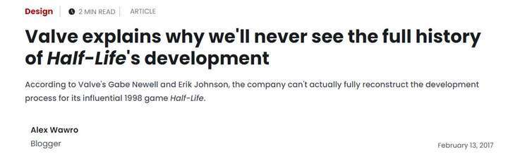 作爲一款聲名顯赫的作品,《Half-Life》的開發過程自然有許多人願意去不斷挖掘。但在2017年外媒對Valve進行採訪時,包括公司創始人加布.紐維爾(Gabe Newell)在內的成員都表示,因爲一些文件損毀和資料丟失,他們已經無法全面還原整個開發歷史的各個細節。