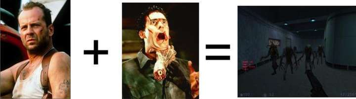 在開發《DooM》時,id Software想象出了一場DND、克蘇魯、異形與鬼玩人2的亂(消音)派對。而《Half-Life》雖然個性沒那麼強烈,卻也依舊是虎膽龍威在約炮軟件上認識了鬼玩人2之後的產物。