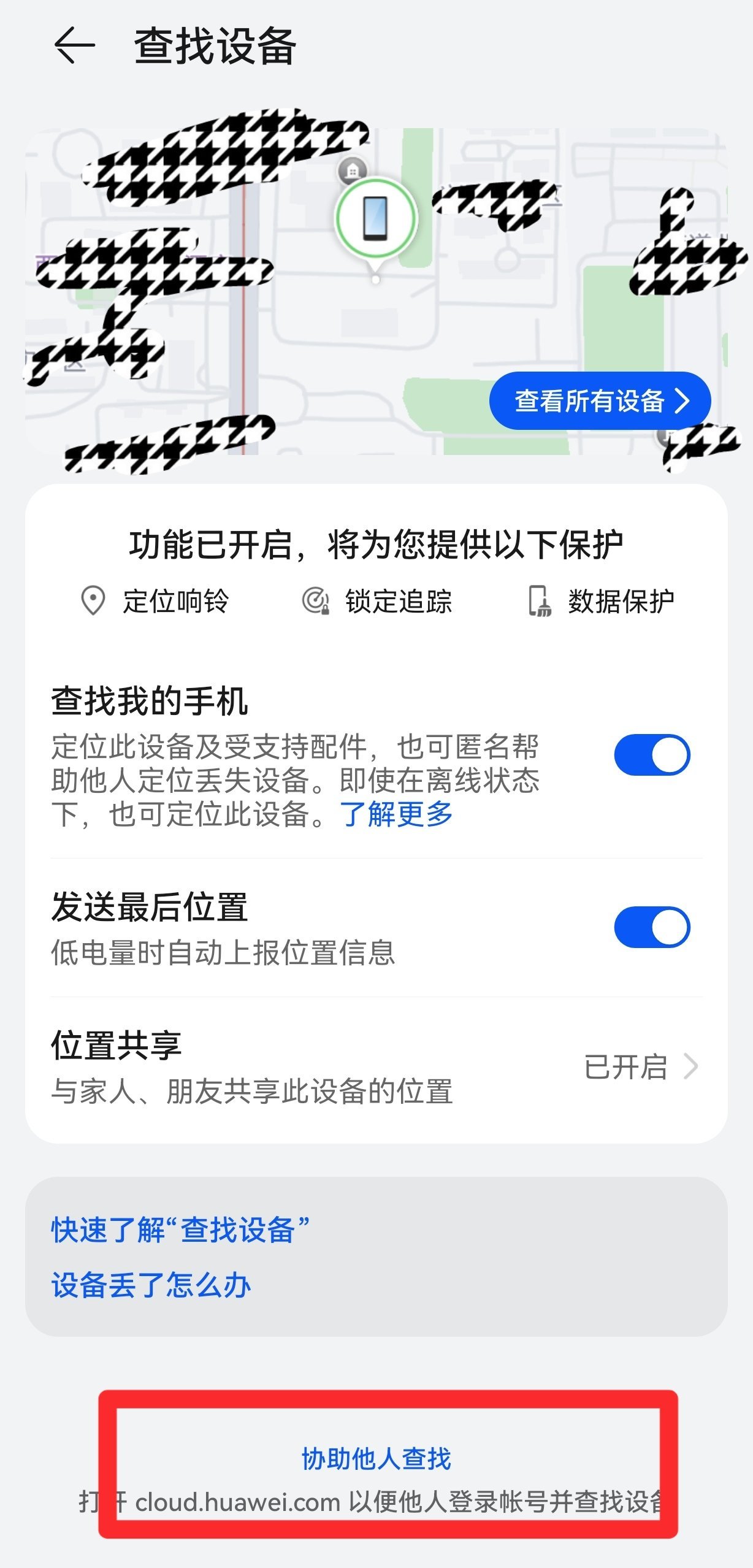 此处显示手机当前或最后在线的位置,上面就是地图信息,可以放大查看周围细节,尚不知道能不能定位到楼层。
