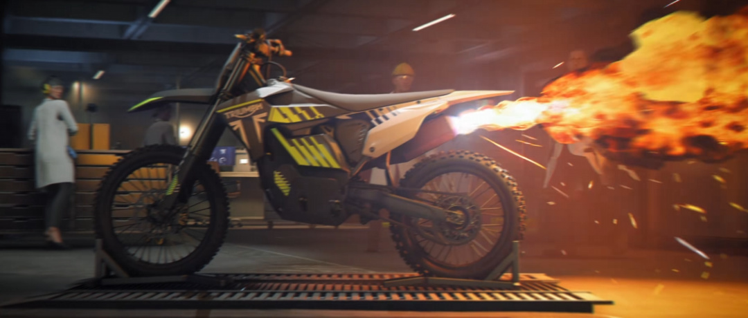 高科技交通工具当然少不了,除了阿斯顿马丁还有屁股冒火的特技摩托。