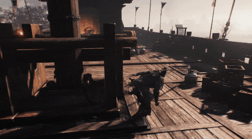 而且这次,主角似乎有武士和忍者的双重身份,可以随时进行切换,地图也更加广阔,可以借助忍者的能力能去到很多以往想不到的地方,玩起来估摸能有不少花活。