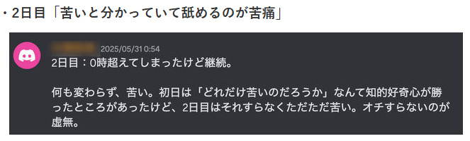 ·第三天才感覺最痛苦,讓人無比難受的苦那種。