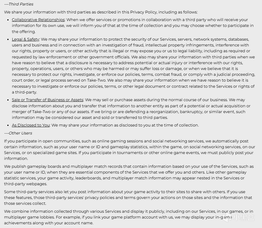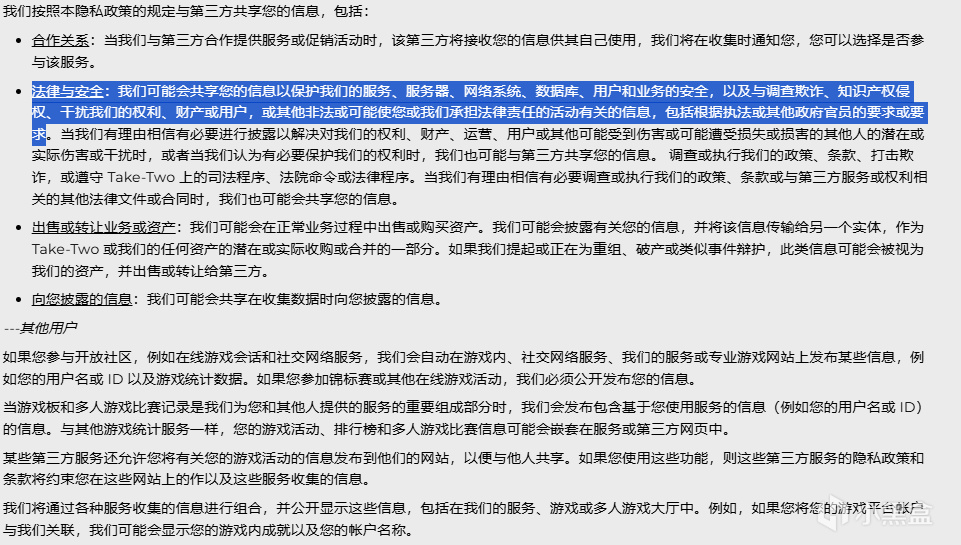 在騰訊的條例都沒有這麼明目張膽出售你的全部信息。(Take-Two沒有額外說明就當是默認全部)