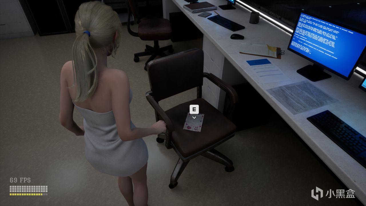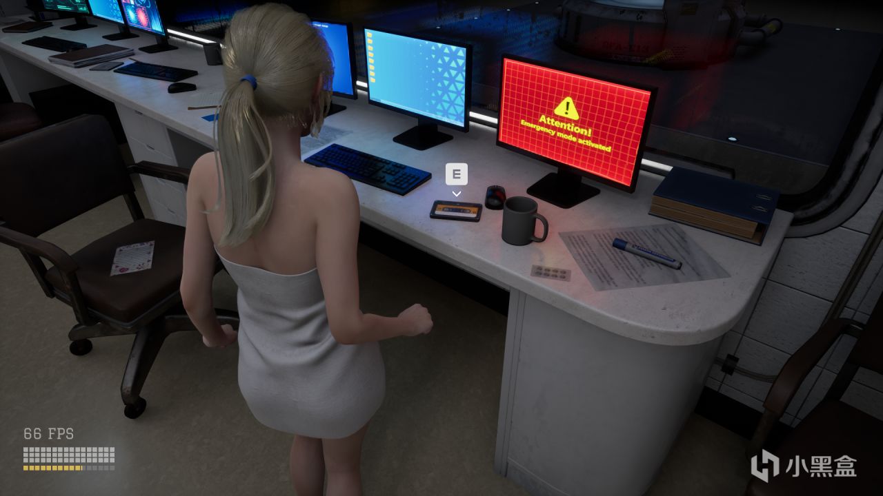 控制室在前方尽头处右方,我们来到控制室,发现无法打开,需要门禁卡,门禁卡在走廊的桌面上