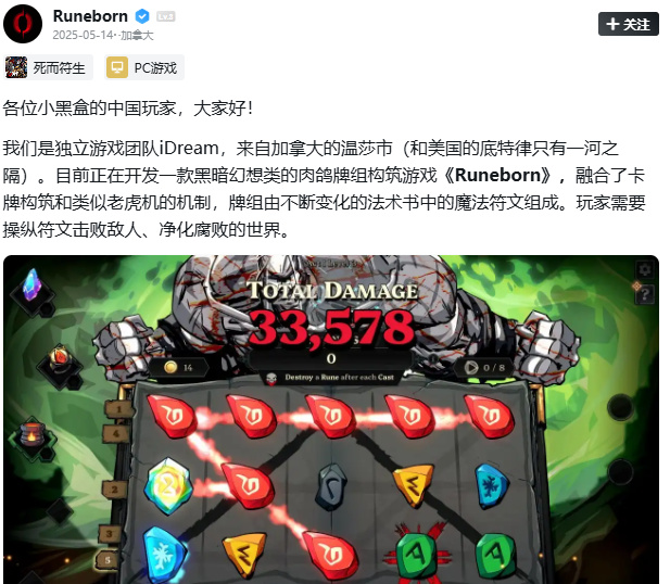 举个例子,在一众请求“赐名”的游戏里,其中有一款叫做《Runeborn》。