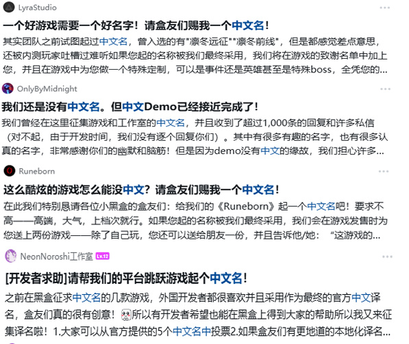 不少海外的游戏开发者跑到了国内的玩家社区,开始“跪求”中国玩家命名.....