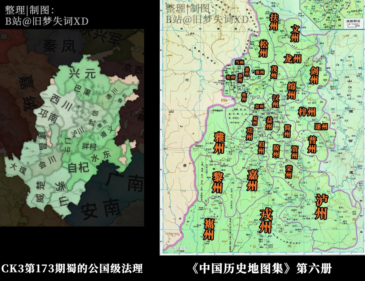 看完了王國級的法理後。我們再來看看以公爵法理包含了哪些唐朝州府行政區。首先是蜀的公爵法理劃分。