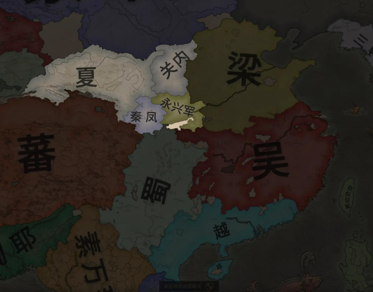 我們先從秦帝國法理開始。如圖,秦下轄四大法理王國,分別是夏、關內、秦鳳和永興軍。