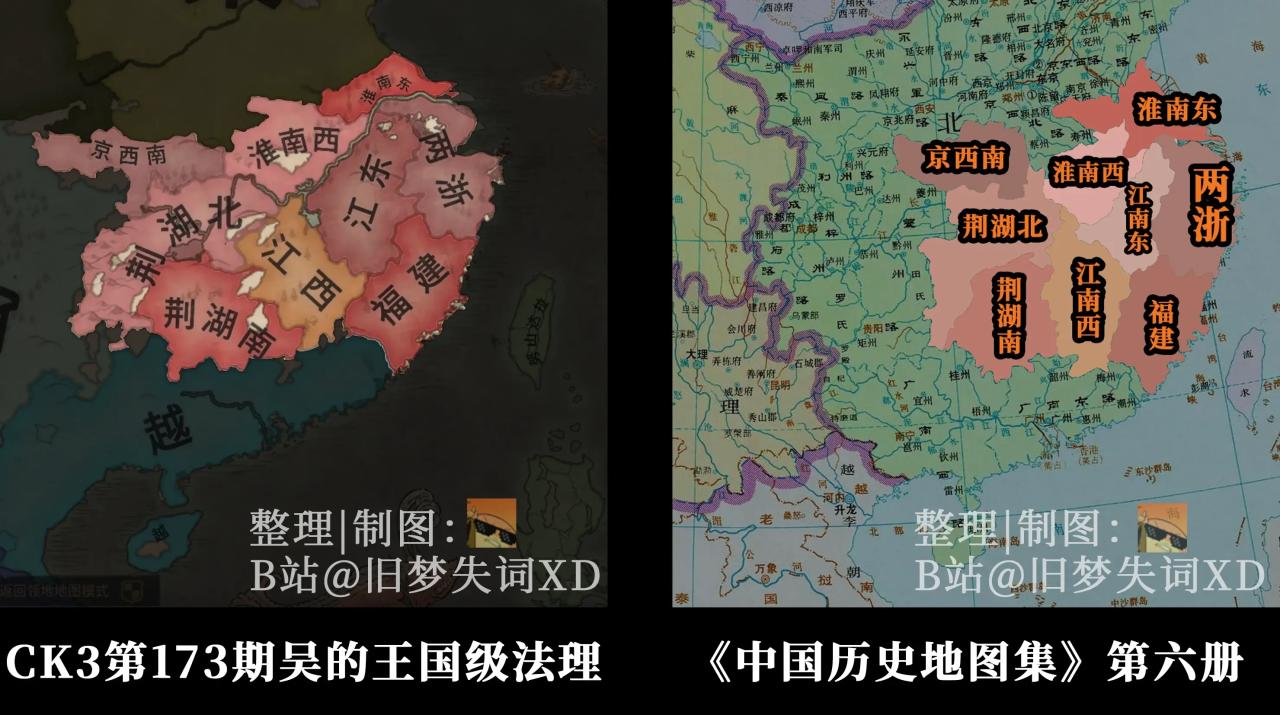 如上文所述,吳的一大改動便是將淮南東路的淮河以北地區劃給了京東西路。此外,遊戲選擇以江東和江西命名歷史上的江南東路和江南西路,而其他區劃則採用了歷史名稱。