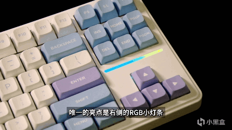 A87实物和官图基本一致,键帽也没有色差 ,外观设计中规中矩 ,没有什么特别亮眼的地方 ,唯一的亮点是右侧的RGB小灯条, 给这个朴素的外观增添了一丝趣味 。