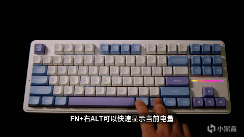 A87作为一款三模键盘 ,Pro版直接给到了12000mAh的大电池,普通版也有6000mAh ,就算是灯效全开 ,续航能力也不用太过担心 。这里给大家一个小Tips ,FN+右ALT可以快速显示当前电量。