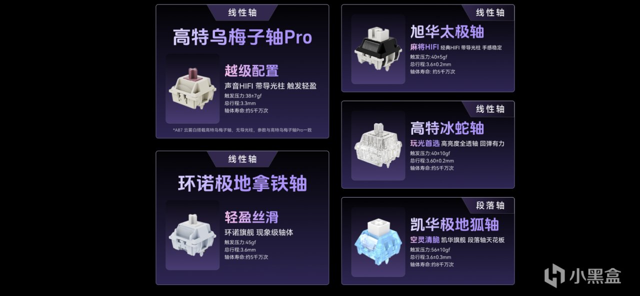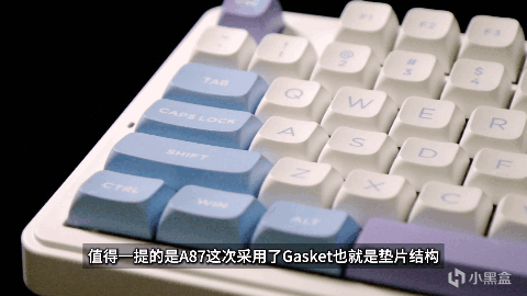 值得一提的是A87这次采用了Gasket也就是垫片结构, 官方宣称有五层填充和全景HiFi麻将音, 同时A87也支持全键热插拔 ,官方提供了五种轴体可以选择, 我手里这把是乌梅子轴Pro ,我个人实际体验下来还算满意 ,打字时的手感和声音都还不错。