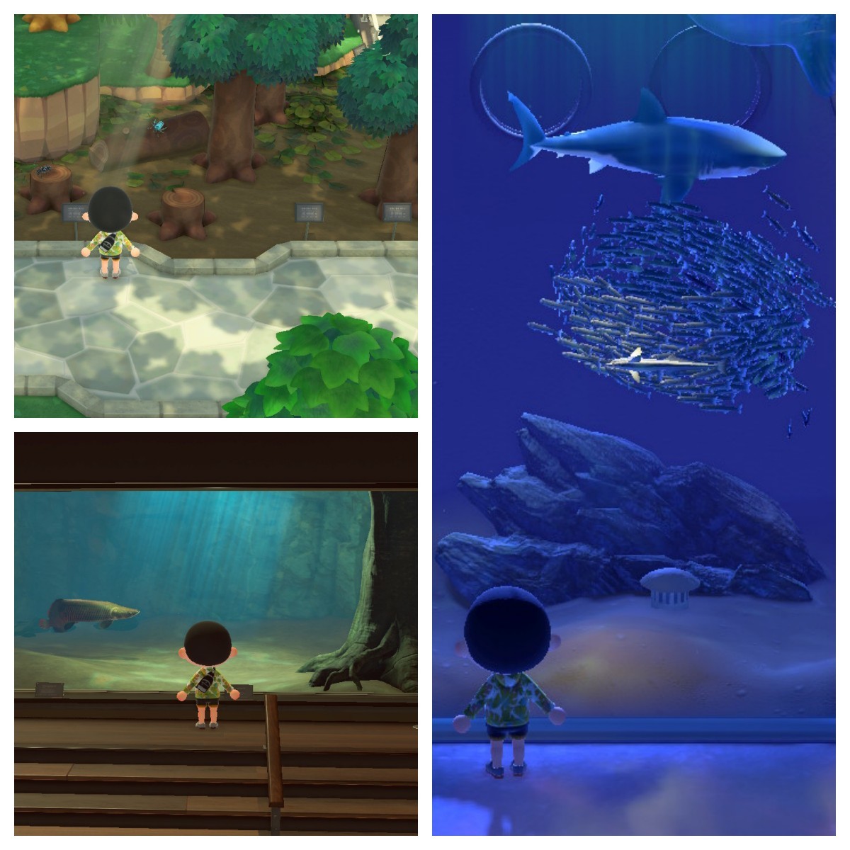 闺女是个囤物狂,在我的岛上挖掘的,钓到的,捕捉的任何生物,她都爱放在地上,如同摆摊一样,满地的鱼缸恐龙化石……不一会儿就下不去脚丫子了。